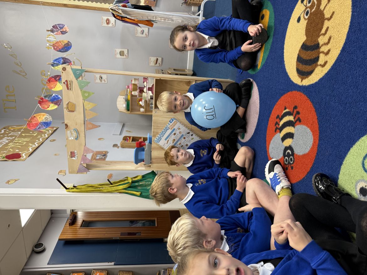 Today we have looked at the digraph, 'air'. We played a game with our air balloon and if it was passed to us, we had to say a sentence which contained a word which uses the air sound! We had some fantastic examples: "my mum brushes my long hair", "I walked down the stairs", "I went to the fairy glen".
