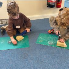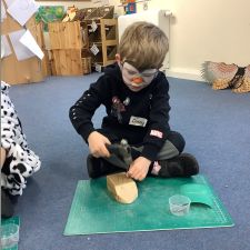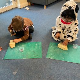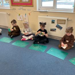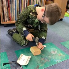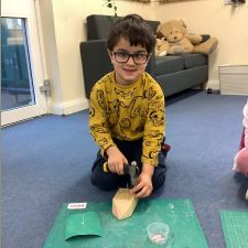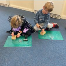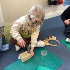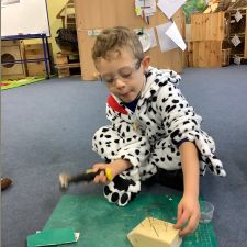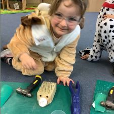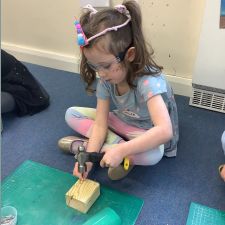 Reception had an amazing afternoon on Animal day when we were visited by the Wood 'n' Craft team. They started the day with an introduction to the team and a lovely Spring story involving a rabbit and a hedgehog. When it was their group's turn, they went into the 'Caterpillar Room' and were tasked with making their own hedgehog. They were told about the importance of being safe, wearing protective goggles and how to use each tool safely and effectively. They had to use sandpaper to smooth out the edges, hammer in as many nails as they could manage into the back, screw in the eyes with a screwdriver and a drill. The grown ups then glued on the feet to finish them off. We were blown away by the children's skill in using the tools effectively, resilience to keep going, their maturity and also respect for the equipment and our visitors.