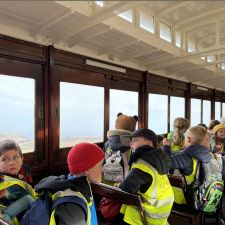Yesterday Year 2 embarked on a mountaineers journey up Snaefell to consolidate our learning about Mountains! We took the bus to Laxey and then travelled by tram up to the top of Snaefell, before walking to the summit! On the journey we learnt lots of facts about the landscape and the mines, we also saw The Laxey Wheel. While at the top we had special booklets to complete and we even got treated to a hot chocolate to warm us up, as it was a little windy at the top.